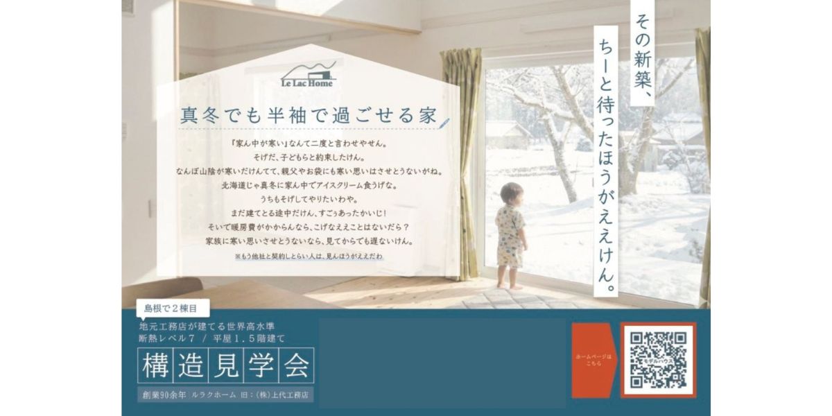 松江市での新築注文住宅話はもちろん、あたたかくて地震に強い家を建ててきたハウスメーカーのお話です